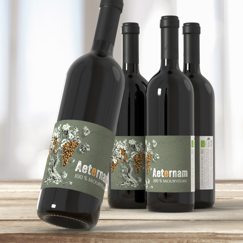 Illustration et design d'etiquette de vin